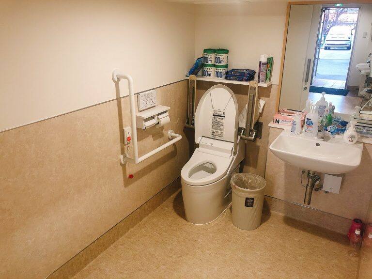 「バリアフリートイレ」と、今まで以上に広い空間のリハビリ室が完成して、