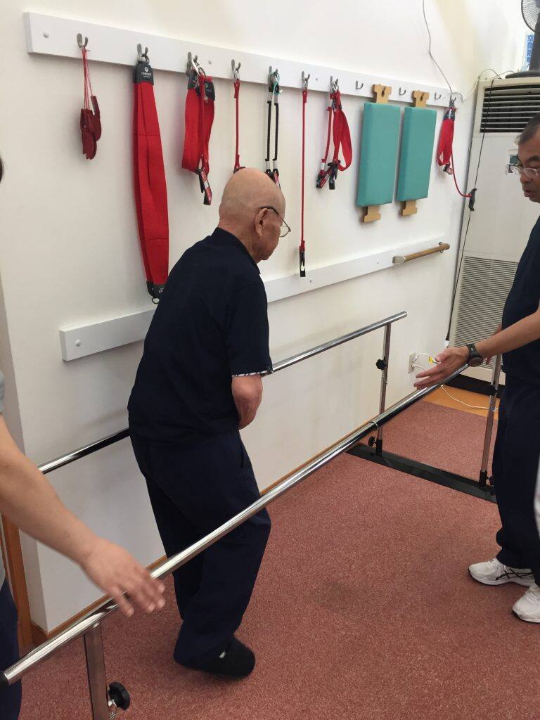 平行棒での歩行訓練リハビリを積極的に行ってます。