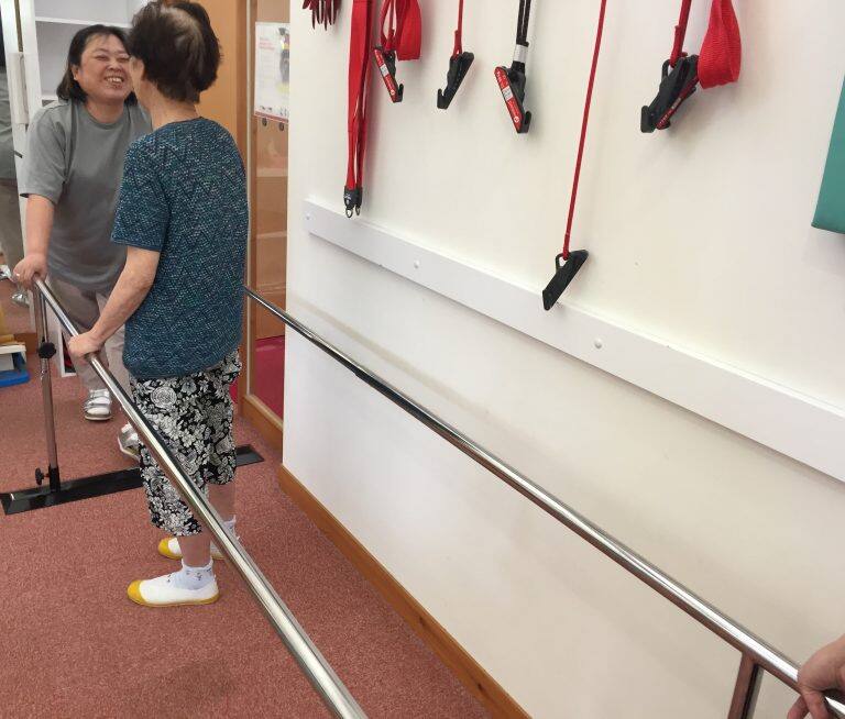 平行棒を9月から導入し、立位バランストレーニングを行っています。