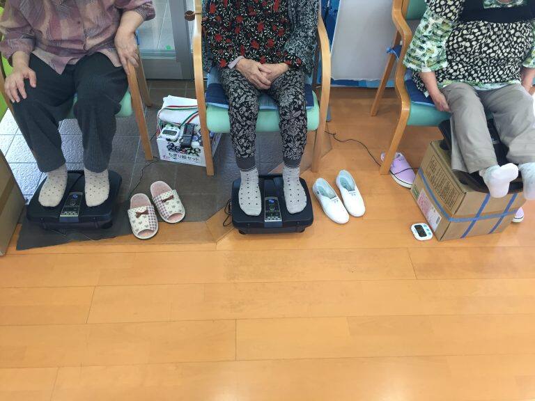 デイサービスかがやきでは 足裏7分 ふくろはぎ7分の振動療法を行い、